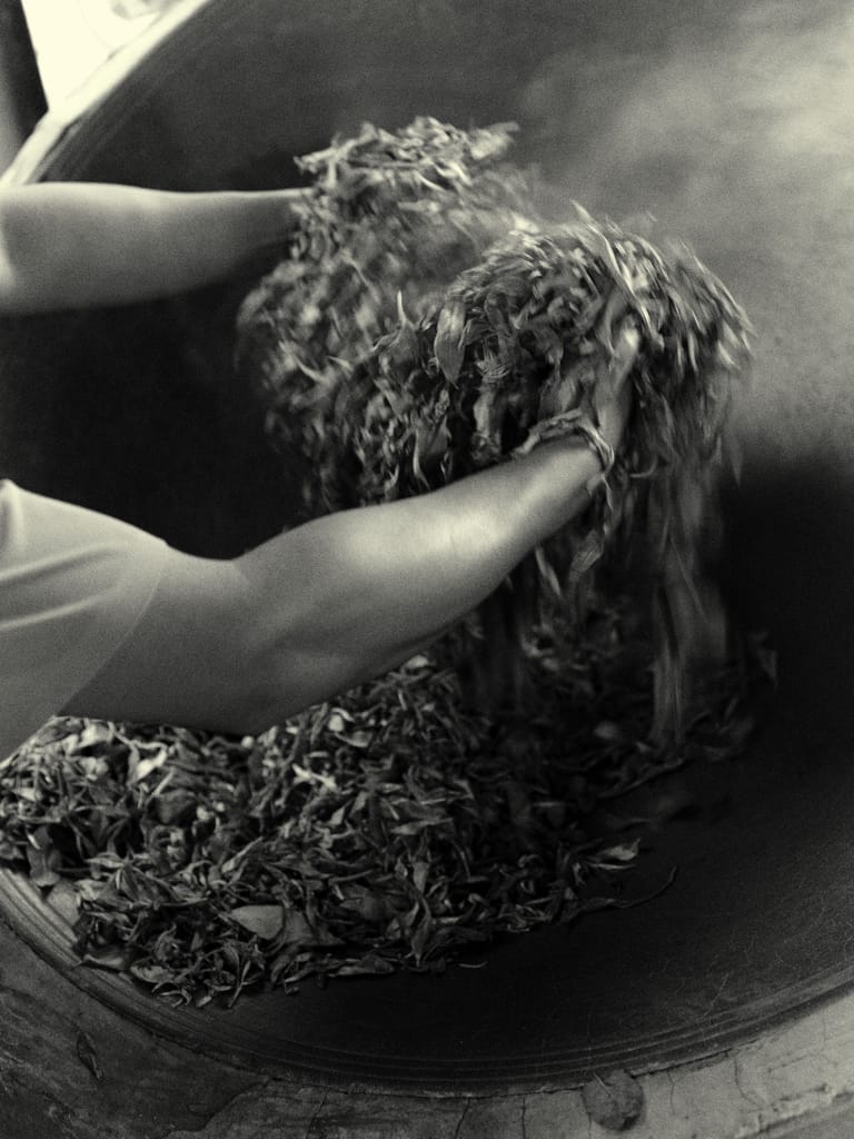 Approximately 1,000 kilograms of Pu’er tea leaves yield just one kilogram of tea absolute, underscoring the material intensity behind ingredient-driven fragrance development. Image: To Summer